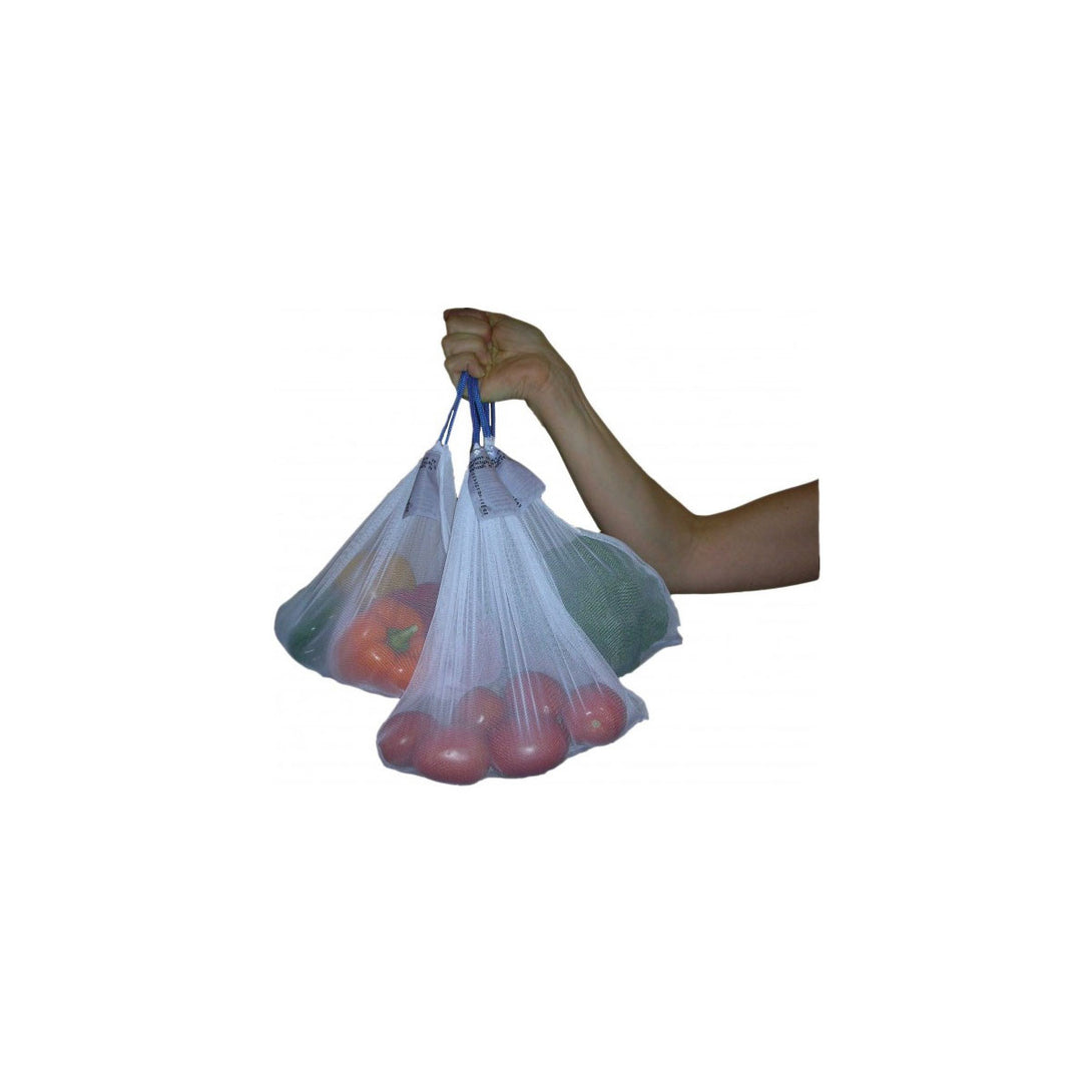 The reusable produce bags can safely carry up to 2 kilos of produce and they have a generous gusset and draw string tie making them very functional and easy to use. They weigh only 10 grams per bag and are see through to help identify contents.