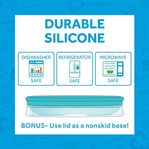 The BPA-free Replay Silicone Plate Lid and Cover also doubles as a non-skid base and is dishwasher safe, fridge and microwave safe as well. The cover makes it really ease to prepare meals and means that full plates can be stacked when in the fridge as well.
